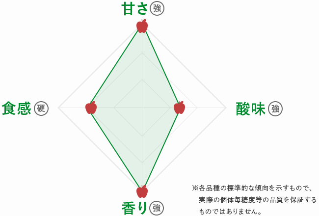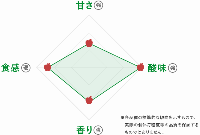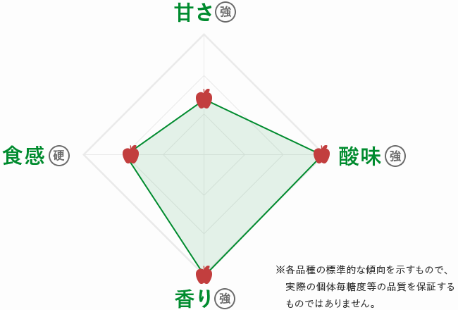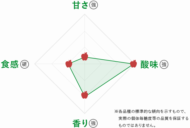 酸味は少なめでしっかりとした甘みがあり、果肉はシャキシャキした硬めの食感が特徴です。