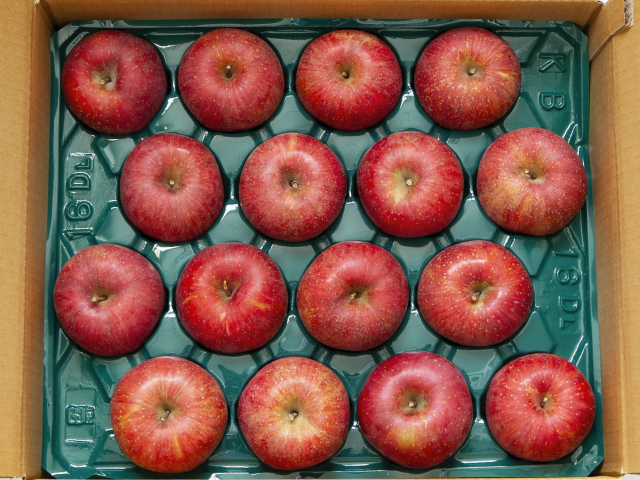 りんごは植物ホルモンのエチレンを発するため、ほかの果物や野菜と一緒に保存すると成熟を促してしまいます。保存する際はラップやポリ袋にいれてください。ダンボール箱で保存する際も、お互いのエチレンで成熟が進むので、個別に新聞紙で包んで、ポリ袋に入れておくことをおすすめします。また温度が低く、温度変化の少ない場所を選んでください。